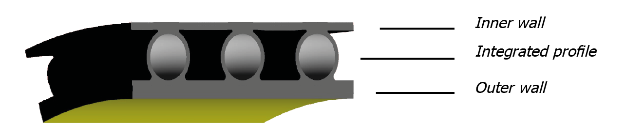All pipes are produced in Egypt at KRAH MISR by using high quality Polyethylene PE100 rawmaterial “Borouge HE3490 LS”. The raw material has a Minimum Required Strength (MRS) of 10 MPa and provide a high resistance against external loads. For the pipes a profiled wall structure with adequate inner wall to handle the inner pressure was designed. Following the standard DIN 16961 and considering PE100 and Design Coefficient of 1,25 (acc. ISO 12162) the pressure class PN 2,5 is correlating with SDR 65, what means 24 mm solid wall at diameter DN/ID 1500 mm. The additional profiled wall structure ensures highest grade of pipe stiffness and buckling resistance. The pipes fulfills a higher stiffness than SN 16 [kN/m²] (calculated with flexural modulus of 1000 MPa.